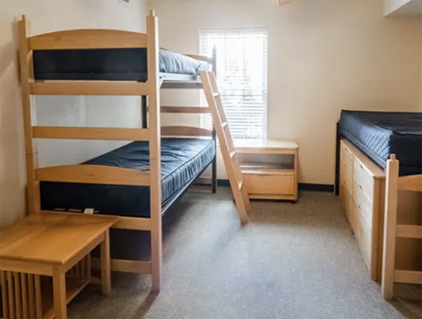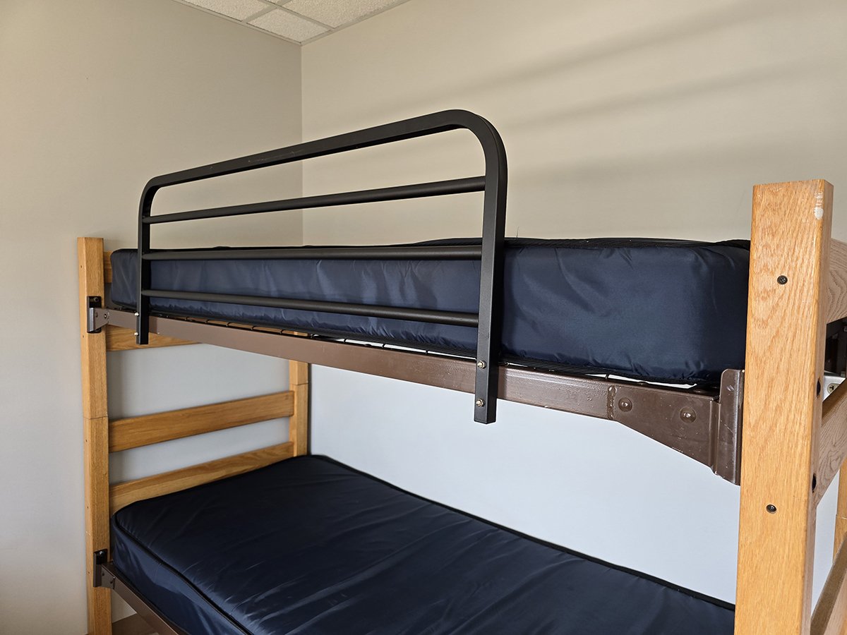 If you request a bunked or lofted bed, bed safety rails will be installed on both sides of the lofted bed or upper bunk. Residents do not have the option to refuse bed safety rails.