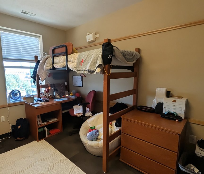 I noticed on the videos of my son’s dorm that bed rails were not on the beds. I emailed Residence Life about requesting bed rails for my son. Their response: “For the bed rails, we provide bed rails underneath to make the beds sturdier, but we do not provide bed rails for students to have on the side of the beds.” Very disappointed. We bought a bed rail for our son and installed it when we got to his dorm. -Submitted by Bethany Hadelman